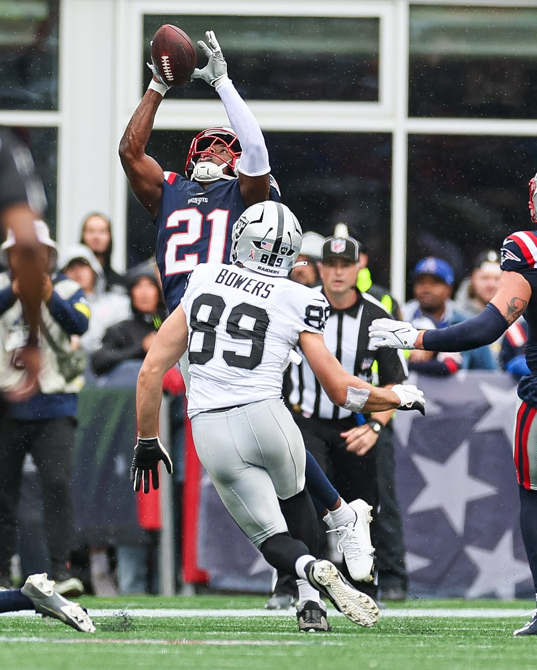 Douglas had a bad drop on New England's second drive. For a quarterback like Drake Maye who, admittedly, comes into games too hyped up, it is incumbent on his supporting cast to settle him down early on. One way to do that is by catching balls when thrown into your hands.
