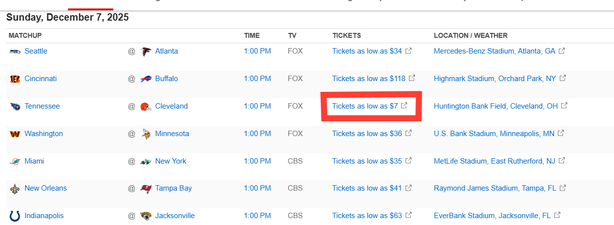 Tennessee Titans (1-11) @ Cleveland Browns (3-9)