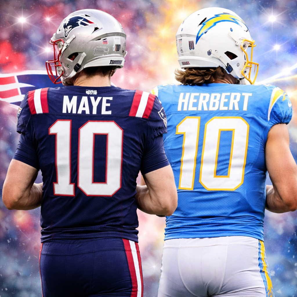 Drake Maye and Justin Herbert could be twins – right down to the #10 on their jerseys. Their arms and playing styles are almost identical. You hear most people compare Maye to Josh Allen, but – to me – Justin Herbert is the more appropriate comparison.